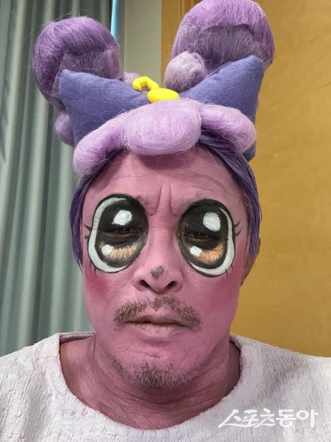 그는 24일 자신의 SNS를 통해 “사랑! 용돈 아껴 써주세요〜 아버지 화이팅 하고 있습니다”라는 글과 함께 옅은 인형으로 분장한 모습을 공개했다.