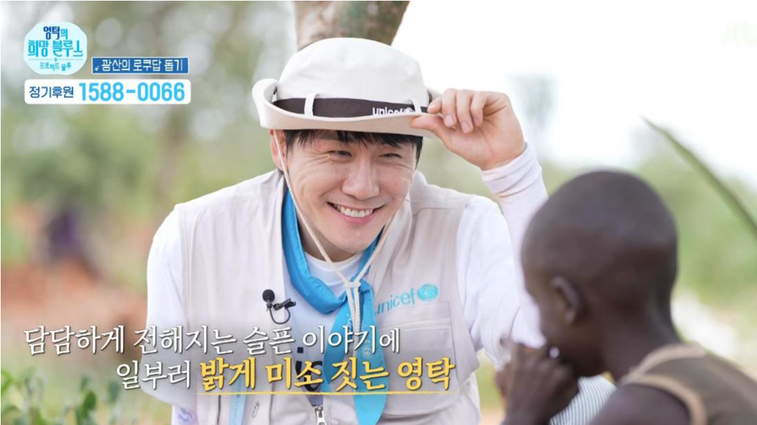 24일 방송된 JTBC 특집 다큐멘터리 ‘프로젝트 블루 : 영탁의 희망 블루스’에서 영탁은 유니세프 한국위원회와 함께 우간다 현지를 찾아 아이들의 삶과 꿈을 가까이에서 마주했다.