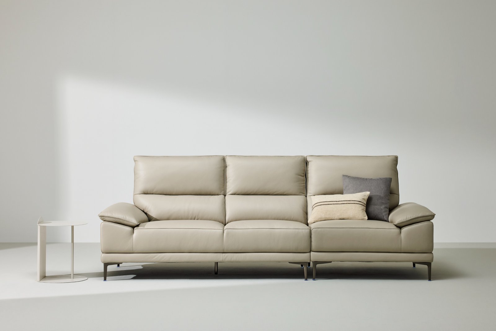 이탈리아 펠레밀라노사의 천연 소가죽을 사용했다. 엄격한 관리 기준과 장인의 노하우를 담아 깊이 있는 색상과 질감을 구현했다. 슬림하고 낮은 팔걸이와 높은 등 쿠션으로 편안함을 갖췄다. 팔걸이는 기대거나 누웠을 때 편안하도록 설계했으며, 등 쿠션은 어깨와 목을 감싸는 디자인을 채택했다.