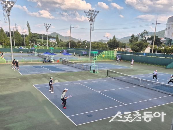 상주시민운동장 테니스장에서 ‘제79회 전국추계대학테니스연맹전 겸 제37회 추계회장배 테니스대회’가 열리고 있는 모습. 사진제공ㅣ상주시