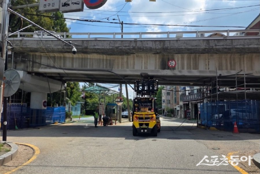 경기도 군포시 당정고가교 보수보강공사 현장에서 8월 22일 작업자가 추락해 부상을 입으면서, 공사 현장의 안전 관리 문제가 도마 위에 올랐다(사고 현장 모습). 사진제공|국토부