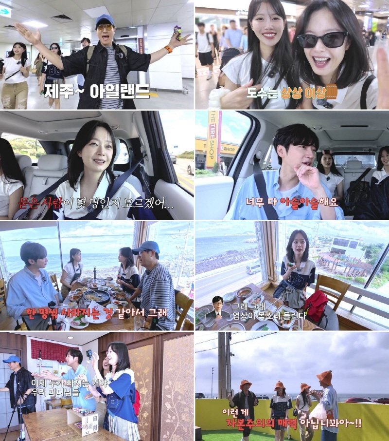 이날 멤버 4인방은 제주도의 맑은 날씨로 인해 공항 도착 직후부터 텐션을 폭발시켰다. 특히 전소민-이미주는 즉석에서 자신들의 이름 한 글자씩을 딴 걸그룹 ‘소주’를 결성, “우리의 도수는 상상 이상!”이라는 소개를 곁들여 웃음을 안겼다.
