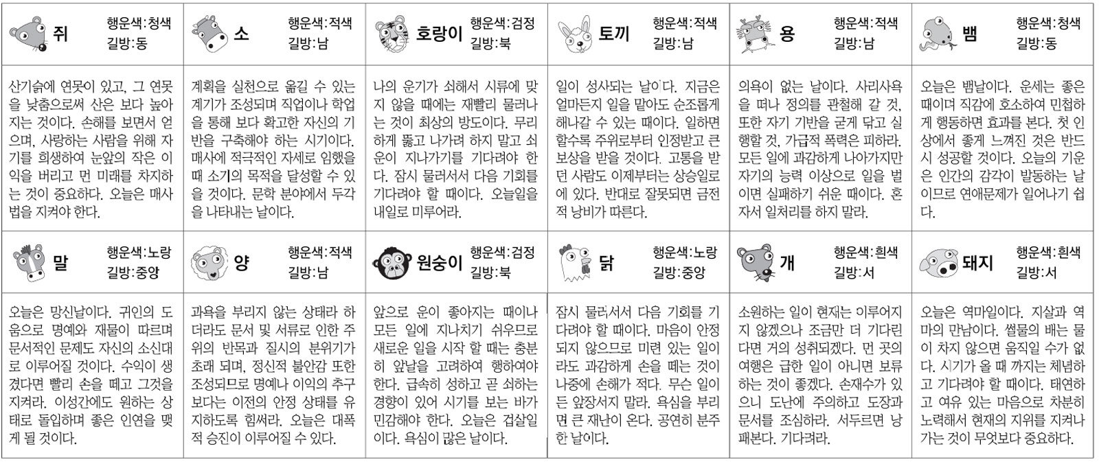 ■ 스포츠동아 오늘의 운세 띠별|운수 좋은 날 (음력 : 7월 6일)