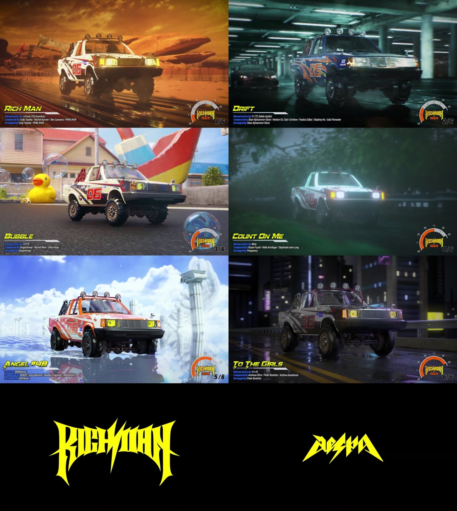 더불어, 28일 0시 유튜브 에스파 채널 등을 통해 공개된 ’Rich Man’ 하이라이트 메들리는 각기 다른 배경을 질주하는 트럭을 통해 다채로운 곡의 무드를 웰메이드로 담아낸 영상미는 물론, 타이틀곡 ’Rich Man’을 비롯해 수록곡 ’Drift’(드리프트), ’Bubble’(버블) 등 총 6트랙의 음원 일부를 들려줘 기대감을 한층 높였다.