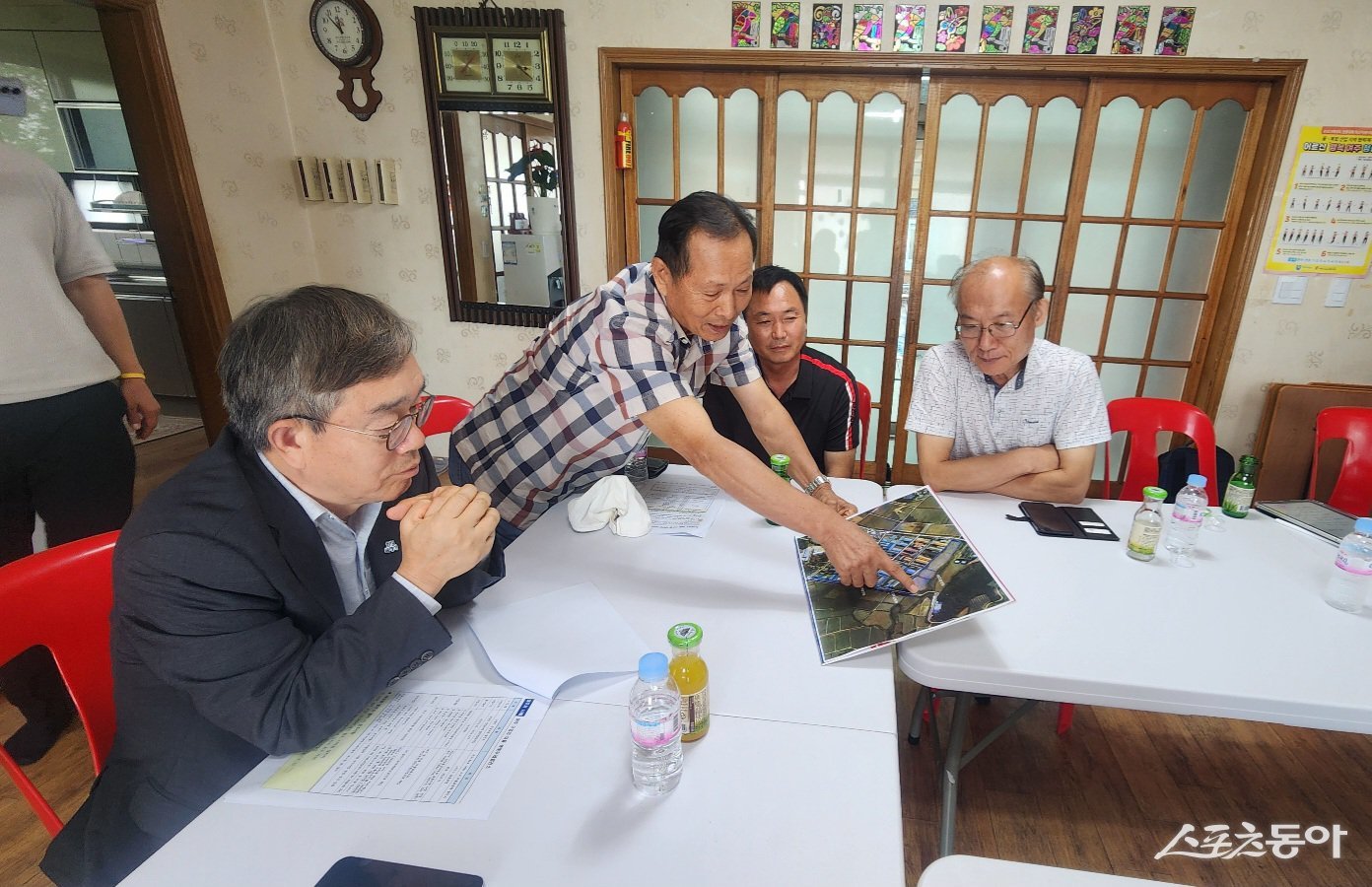 조승문 화성특례시 제2부시장(사진 왼쪽)이 28일 여주시 구양리를 방문해 햇빛두레 발전소 운영과 관련한 설명을 듣고 있다. 사진제공|화성시