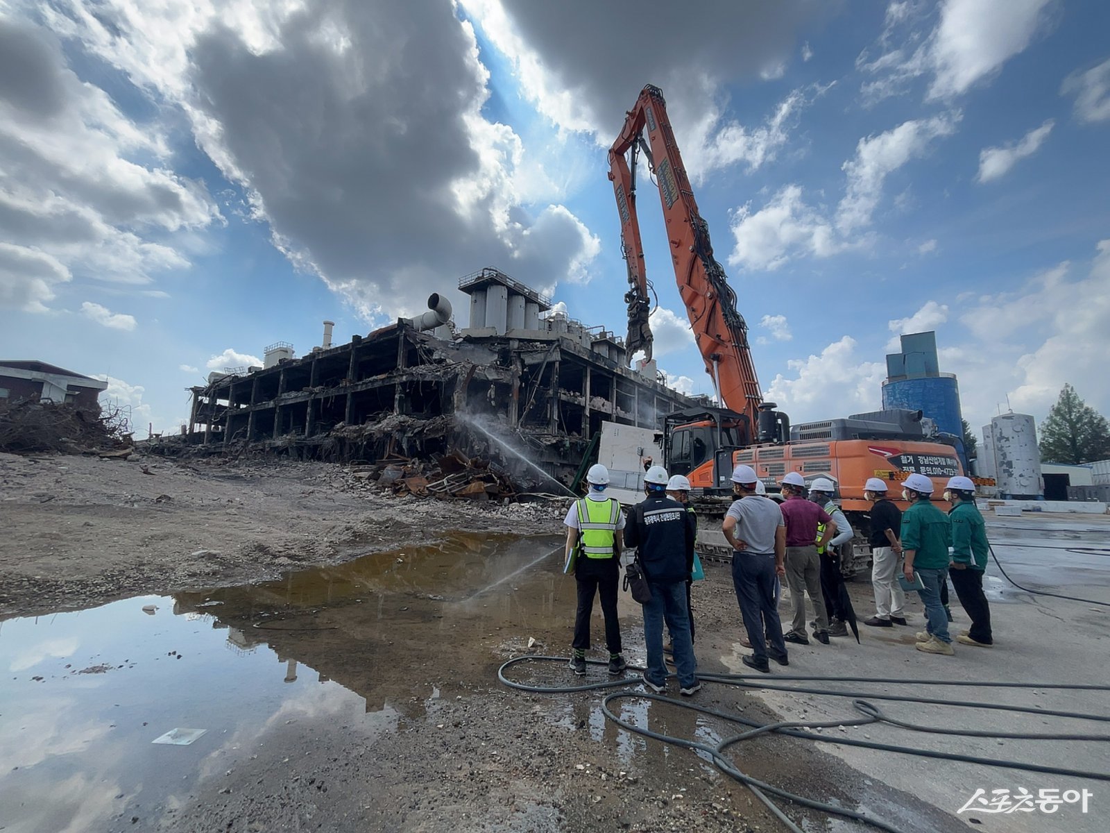 금호타이어 광주공장은 지난 5월 발생한 화재 이후 8월12일 해체 착공신고가 접수돼 구조물 붕괴 위험과 오염물 확산 방지를 위해 8월18일부터 경찰·소방 입회 하에 현장 감식 및 해체 작업을 진행하고 있다. 해체 계획에 따라 지붕 위 위험요소 제거 후 외부에서 압쇄장비를 활용해 3층부터 순차적으로 철거할 예정이다.