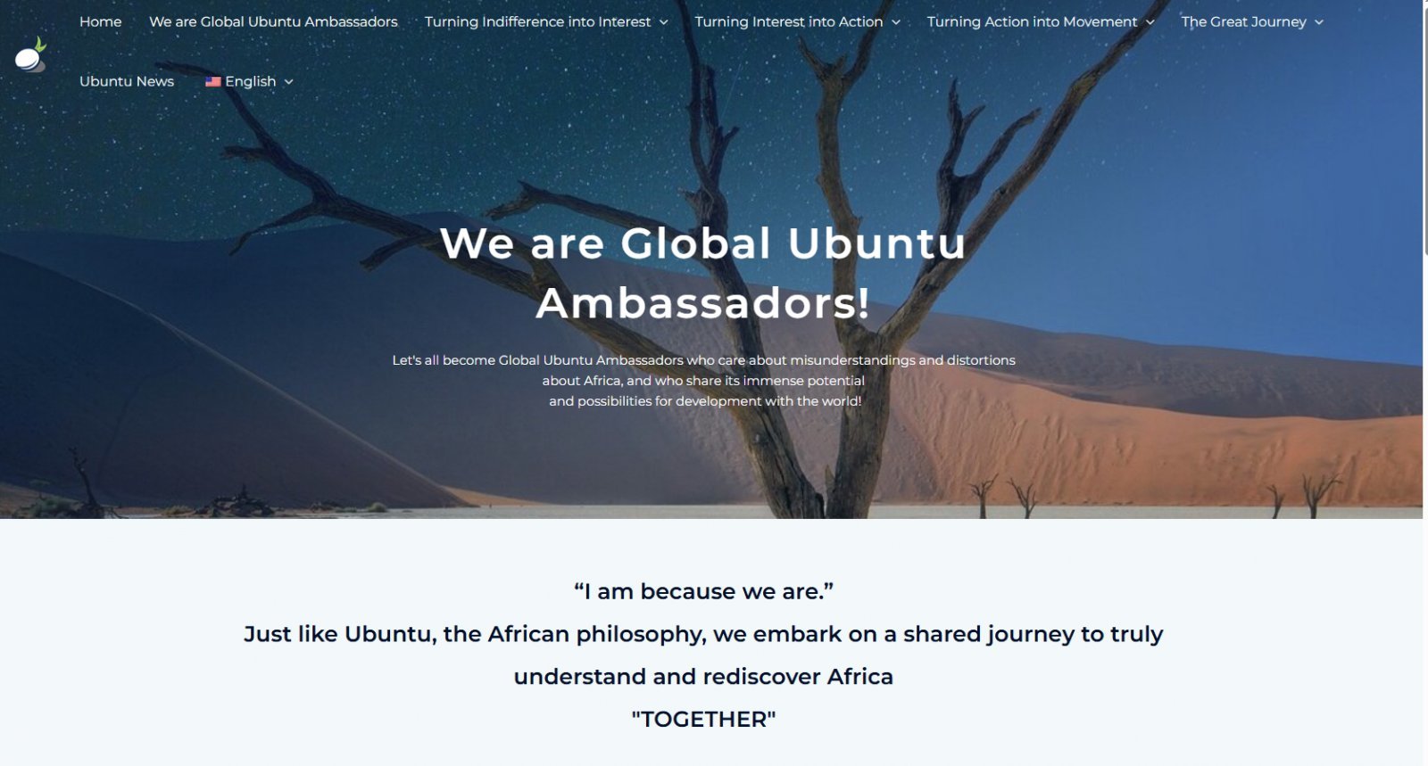 ‘글로벌 우분투 홍보대사’ 영문 웹사이트는 ▲우리가 글로벌 우분투 홍보대사 ▲무관심을 관심으로 ▲관심을 실천으로 ▲실천을 조직으로 ▲위대한 여정 ▲우분투 소식까지 총 6개의 핵심 섹션과 영문 페이지로 구성되어 있다.