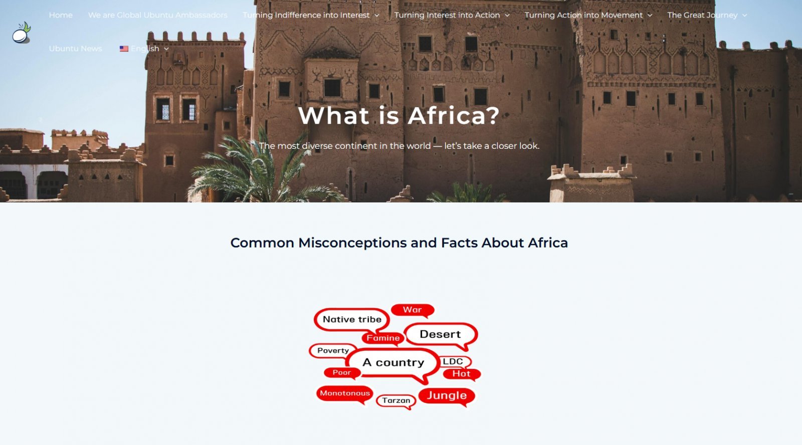‘무관심을 관심으로’ 섹션은 아프리카에 대한 무관심을 깨우고 관심을 불러일으키는 콘텐츠를 모아 놓은 섹션이다. 여기에는 아프리카에 관한 일반적인 오해와 편견을 바로잡는 정보들이 알기 쉬운 자료로 제공된다.
