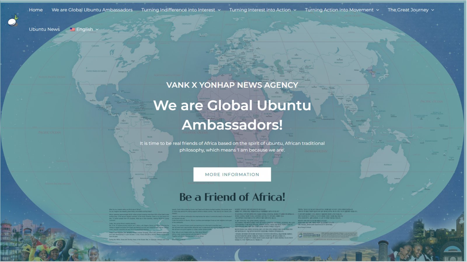 이번에 새롭게 구축한 ‘글로벌 우분투 홍보대사’ 영문 사이트는 ‘가난, 전쟁, 질병’ 등 부정적 이미지에 갇힌 아프리카의 모습을 개선하고 진정한 아프리카의 다양성과 잠재력을 세계에 알리는 것을 목적으로 한국의 독창적인 공공외교 활동을 세계에 알리고자 반크의 주도로 기획되었다.