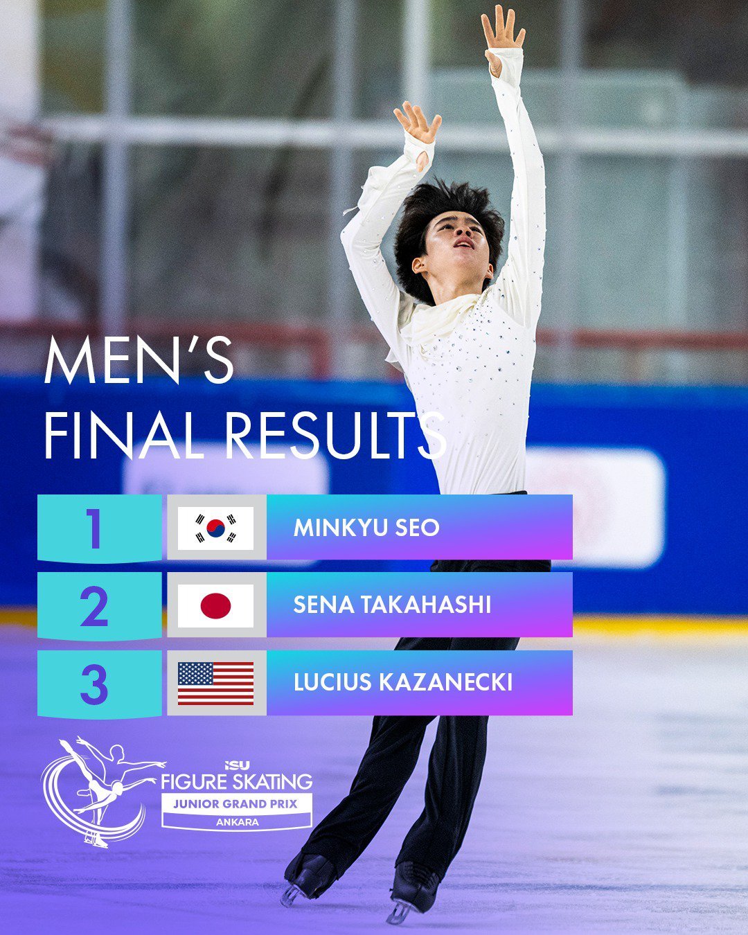 피겨스케이팅 남자 싱글 기대주 서민규가 31일(한국시간) 튀르키예 앙카라에서 막을 내린 2025~2026시즌 ISU 피겨스케이팅 주니어 그랑프리 2차대회 남지 싱글에서 총점 243.27점의 개인 최고점으로 금메달을 목에 걸었다. 사진제공ㅣISU