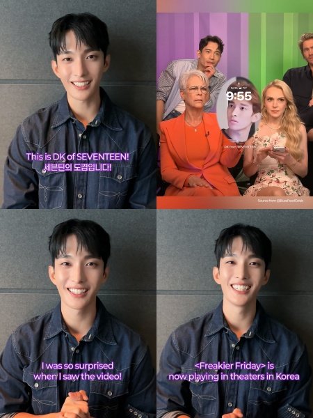 영상 속 도겸은 “저도 영상을 보고 깜짝 놀랐는데, 이렇게 전 세계의 많은 캐럿 분들이 저와 세븐틴을 사랑해 주셔서 감사했다”며 팬들에게 따뜻한 메시지를 전했다. 이어 “재밌는 해프닝을 만들어주신 제이미 리 커티스 배우님과 디즈니 영화 ‘프리키 프라이데이 2’ 팀에게도 감사드린다”며 “영화는 지금 한국 극장에서 절찬 상영 중이니 꼭 보러 가시길 바란다”고 전해 관객들의 극장행을 유쾌하게 독려했다.