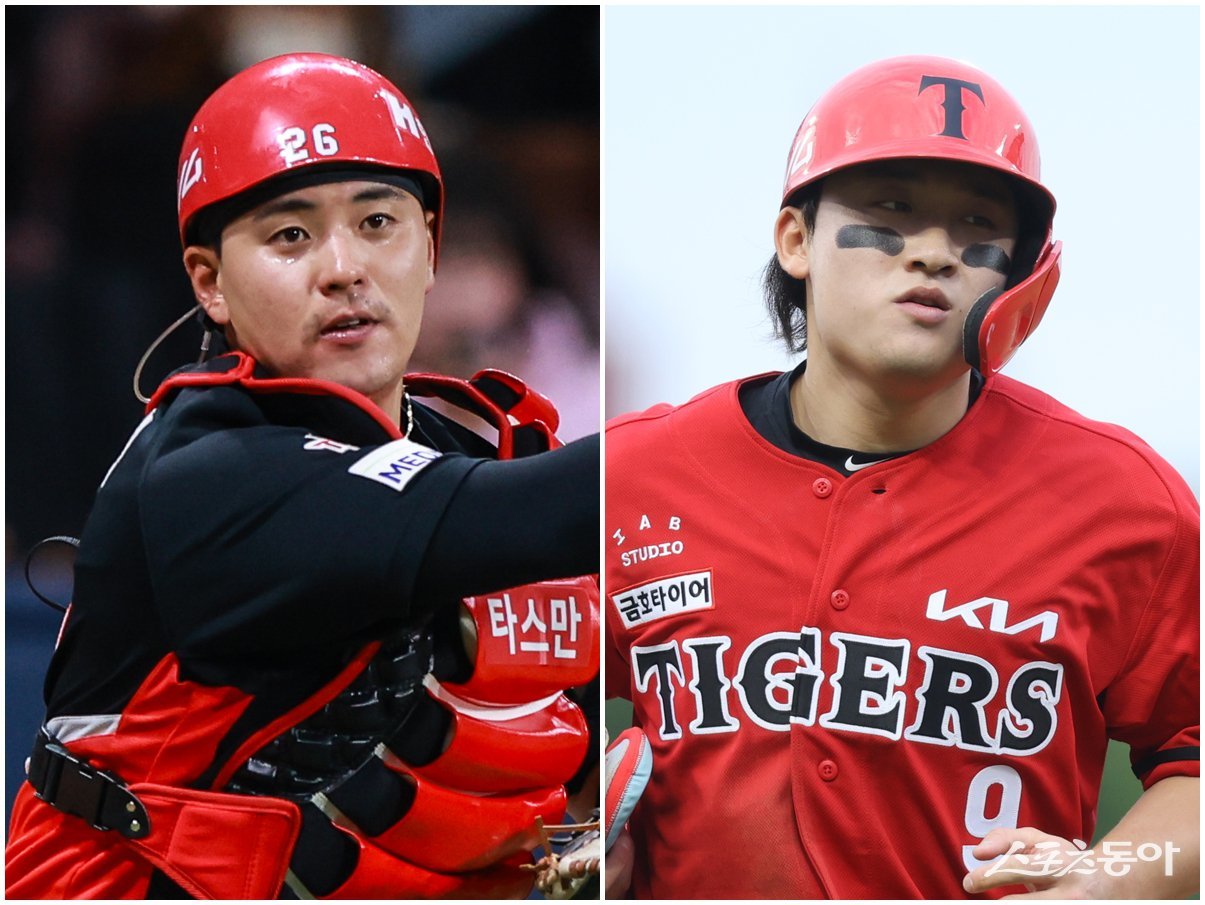 이범호 KIA 감독이 31일 수원 KT전을 앞두고 9월 확대 엔트리로 콜업할 전력들을 일부 공개했다. 포수 한승택(왼쪽)과 내야수 윤도현이 9월부터 1군에 힘을 보탤 예정이다. 사진제공|KIA 타이거즈