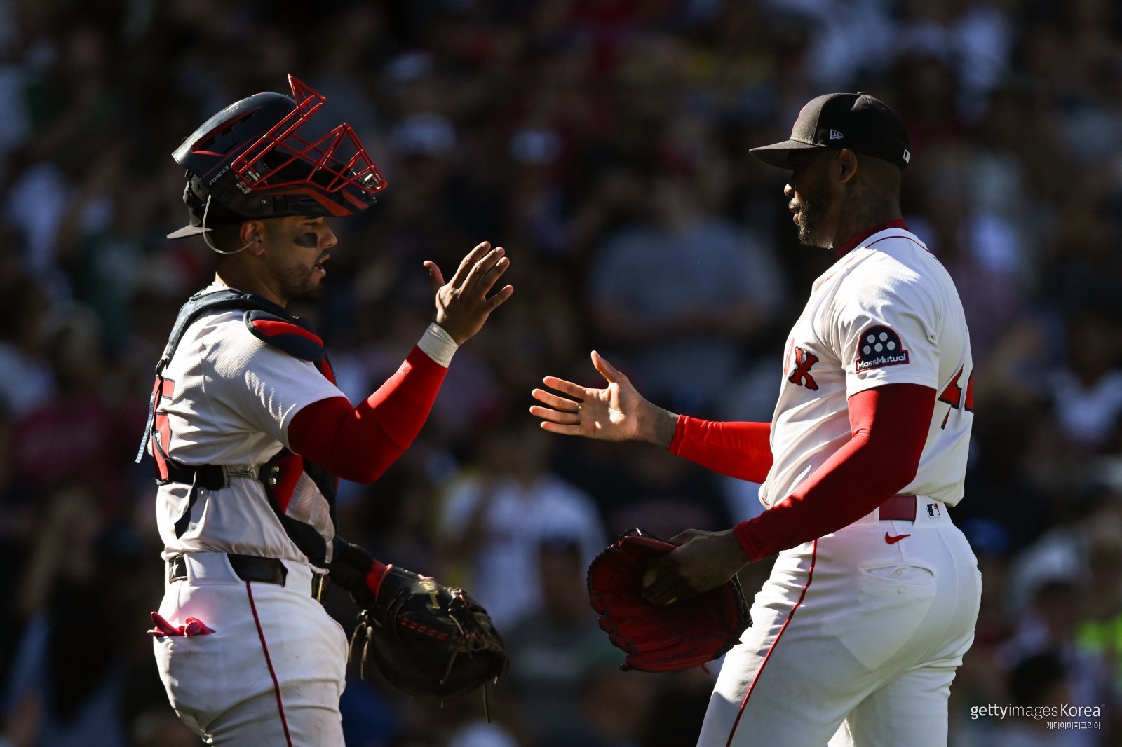 완벽하게 부활한 아롤디스 채프먼(37)이 12년 전 우에하라 고지의 기록을 넘어 보스턴 레드삭스 구단 신기록 작성에 성공했다.