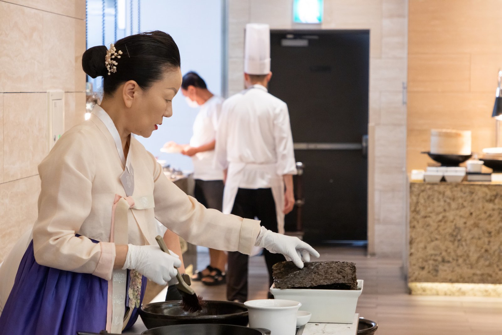 포레스트 리솜 몬도키친에서 김구이 퍼포먼스를 선보이는 이모카세 김미령 셰프