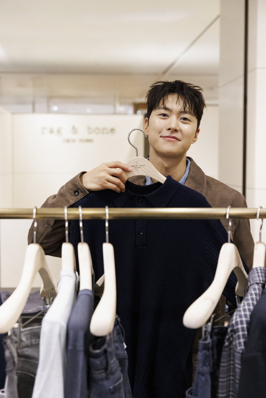 공명은 스웨이드 트러커 자켓과 데님 셔츠를 매치해 깔끔하면서도 세련된 가을 룩을 완성했다. 강유석은 레더 자켓과 인퓨즈 데님을 착용해 도회적이면서도 감각적인 분위기를 자아냈다. 두 배우 모두 랙앤본 특유의 모던한 감성을 자신만의 스타일로 소화하며 현장의 시선을 사로잡았다.