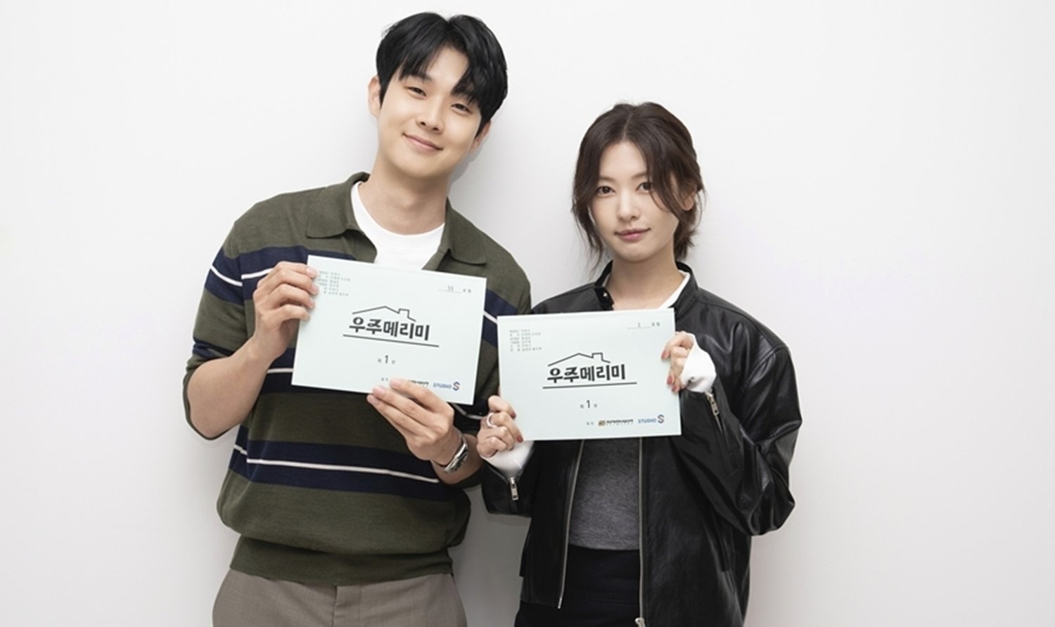 제작진은 “SBS 새 금토드라마 ‘우주메리미’ 첫 대본리딩부터 최우식과 정소민이 사랑스러운 로맨스와 유쾌한 코믹 연기를 200% 보여주며 대본리딩 현장을 뜨겁게 달궜다”라며 “신혼집 경품을 사수하기 위해 90일간 펼쳐지는 우주와 메리의 아슬아슬하고 달콤 쫄깃한 위장 신혼 =부부 케미스트리에 많은 기대 부탁드린다”라고 전해 로코 장인 최우식, 정소민이 어떤 시너지를 낼지 기대감을 무한 자극했다.