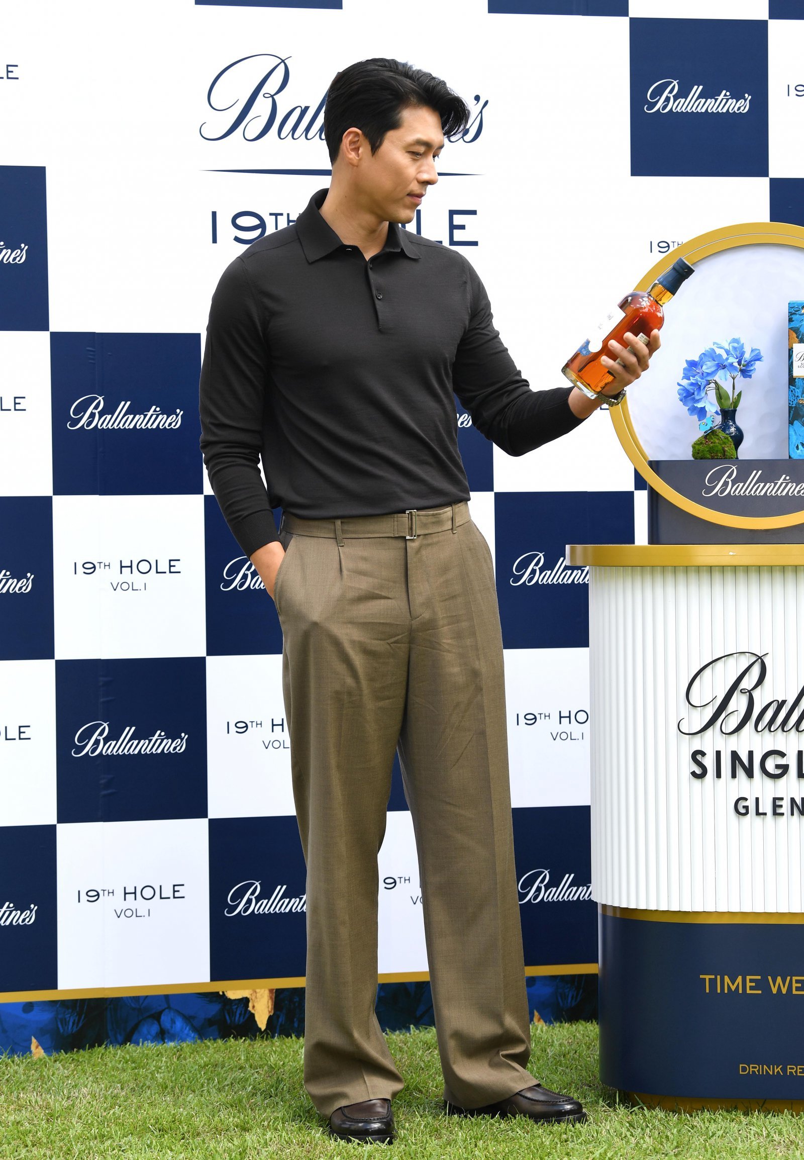 발렌타인 브랜드 모델 배우 현빈이 2일 오후 강원도 춘천시 라데나 골프클럽에서 열린 모던 클래식 스카치 위스키 브랜드 발렌타인(Ballantine’s) 행사에 참석해 발렌타인을 들고 포즈를 취하고 있다.