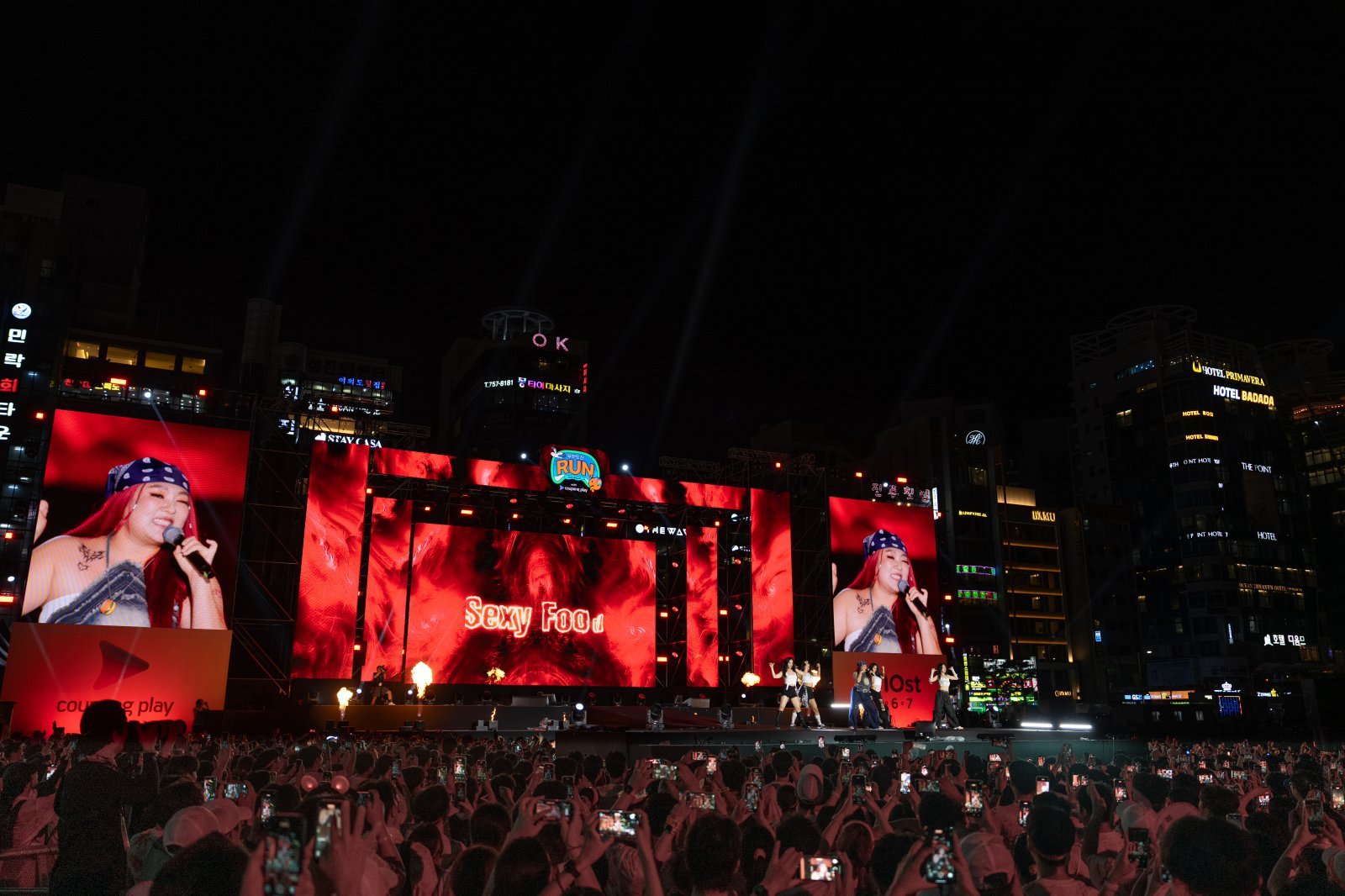 이번 행사의 공식 하와이안 셔츠 차림으로 등장한 ‘무한도전’ 멤버들이 “무한~도전!”을 외치자, 광안리 현장은 단숨에 2000년대 여름 특집 추억 속으로 빠져들었다. 곧이어 박명수, 정준하가 ‘부산’ 이행시로 티키타카를 펼치자, 팬들은 맏형들의 케미에 폭발적인 환호를 보냈고, 멤버들의 재치 있는 멘트와 팬들의 웃음이 교차하며 ‘무한도전’만의 감성과 낭만이 동시에 살아났다.