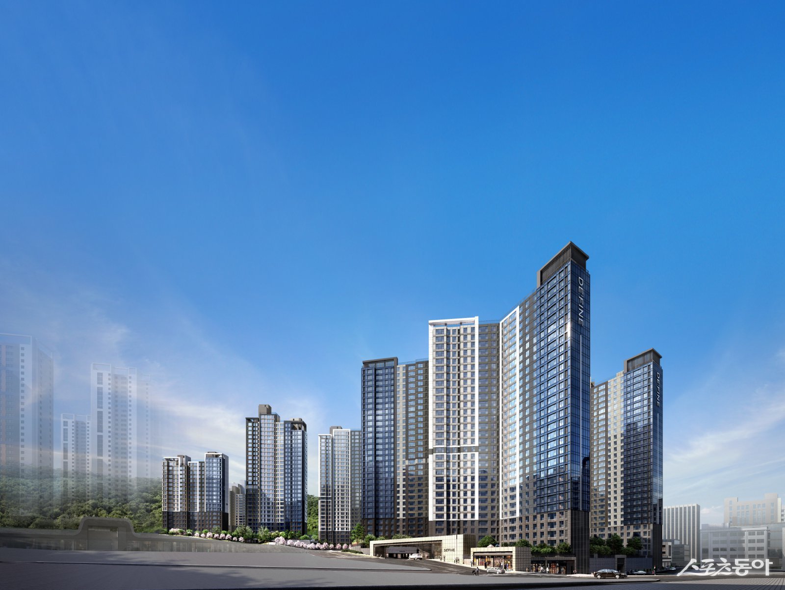SK에코플랜트가 부산 수영구 광안동에서 역세권 대단지 프리미엄 브랜드 ‘드파인 광안’을 선착순 분양 중이다 . ‘드파인 광안’ 투시도. 사진제공 | SK에코플랜트