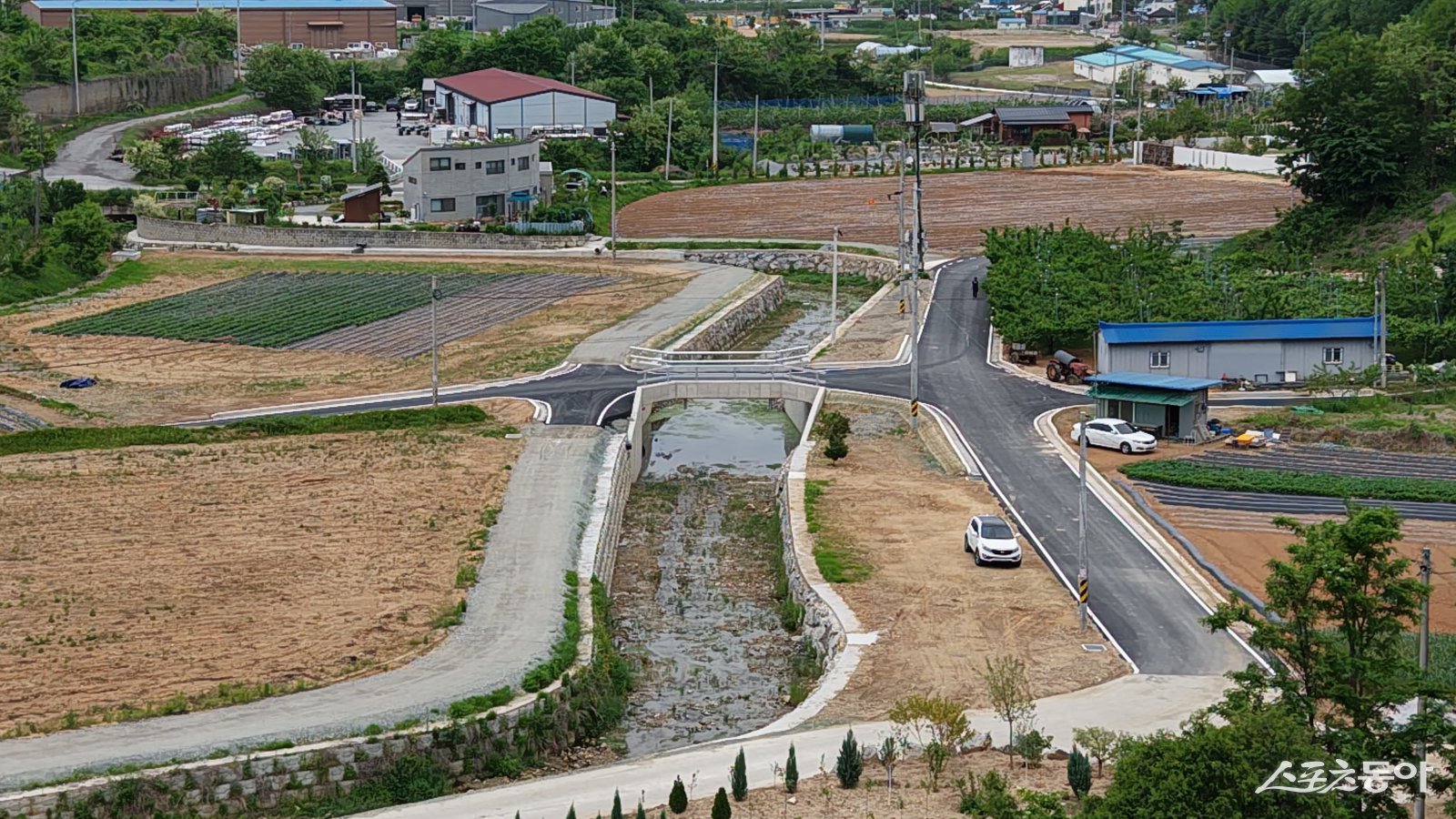 음성군은 4일 집중 호우로 인한 침수 피해 예방과 군민 안전 확보를 위해 추진 중인 소하천 정비사업이 계획대로 진행되고 있다고 밝혔다(감곡면 오근리도당 소하천 준공 전경). 사진제공|음성군