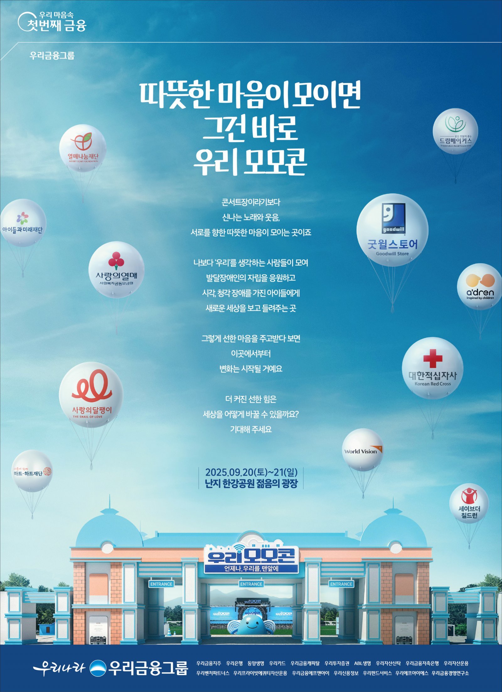 같은 기간 서울 난지한강공원 젊음의 광장에서 열리는 우리금융의 ‘모이면 모일수록 선한 힘이 커지는 콘서트, 우리모모콘’도 이목을 끈다.