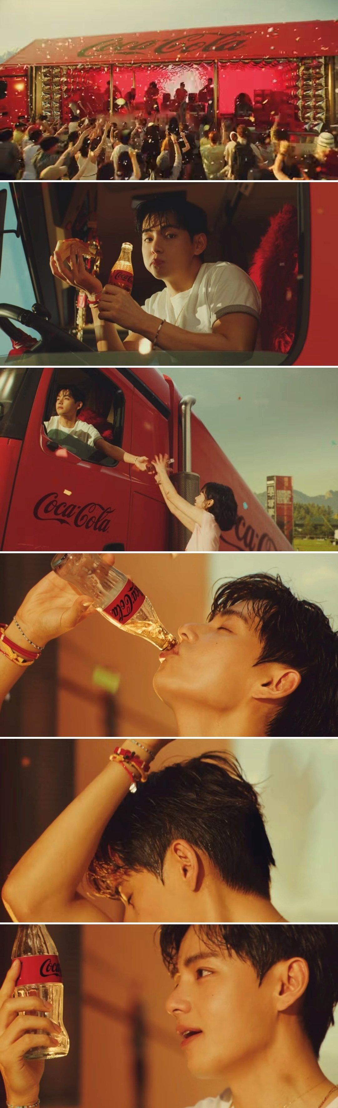 순간, 가득 실린 코카-콜라 제로가 사람들 손에 전해지고, 모두가 함께 음료와 음식을 나누며 청량한 축제를 즐긴다. 시원한 한 모금에 활력을 되찾은 이들은 웃음과 음악 속에서 무더위를 잊고 들판은 축제 분위기로 물든다. 뷔는 이 장면을 흐뭇하게 바라보다 한 소녀에게 무심한 듯 콜라를 건네며 따뜻한 반전을 선사한다. 광고는 뷔가 코카-콜라 제로를 마시는 강렬한 모습으로 마무리되며, 특유의 청량감을 생생히 전달한다.