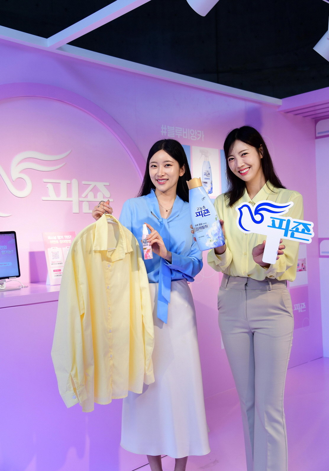 ‘프레시 런드리 숍’ 콘셉트로 구성했다. 핑크로즈, 옐로미모사, 블루비앙카 등 피죤의 향기를 담은 고농축피죤 및 스프레이피죤 등을 체험할 수 있다. 또 퍼스널 향기 테스트, 룰렛 이벤트, 포토존 SNS 이벤트도 연다. 사진제공|피죤