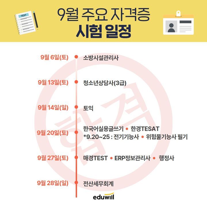 에듀윌은 9월 시행되는 주요 국가 자격증 시험 일정을 3일 공개했다.