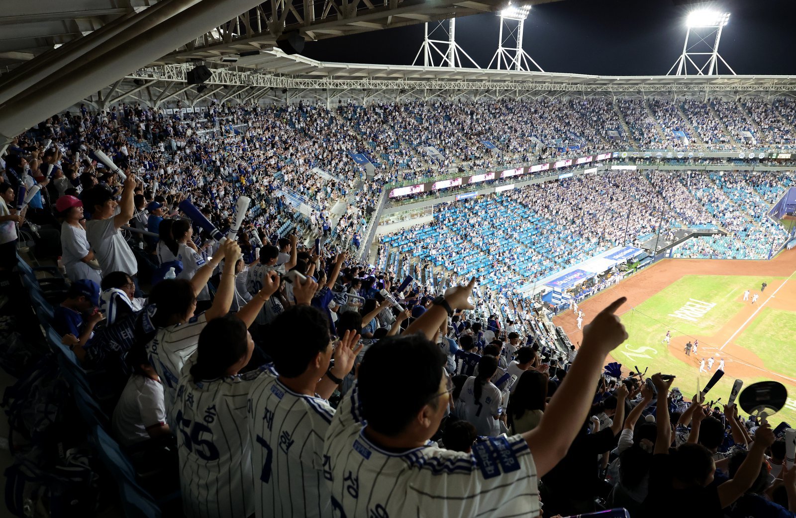 ‘2025 신한 SOL 뱅크 KBO리그’가 역대 단일시즌 최다 관중 기록을 새로 썼다. 삼성은 5일 대구 키움전에서 역대 단일시즌 최다 관중 기록을 새로 썼다. 5일 키움전에서 응원을 펼치는 삼성 팬들. 뉴시스