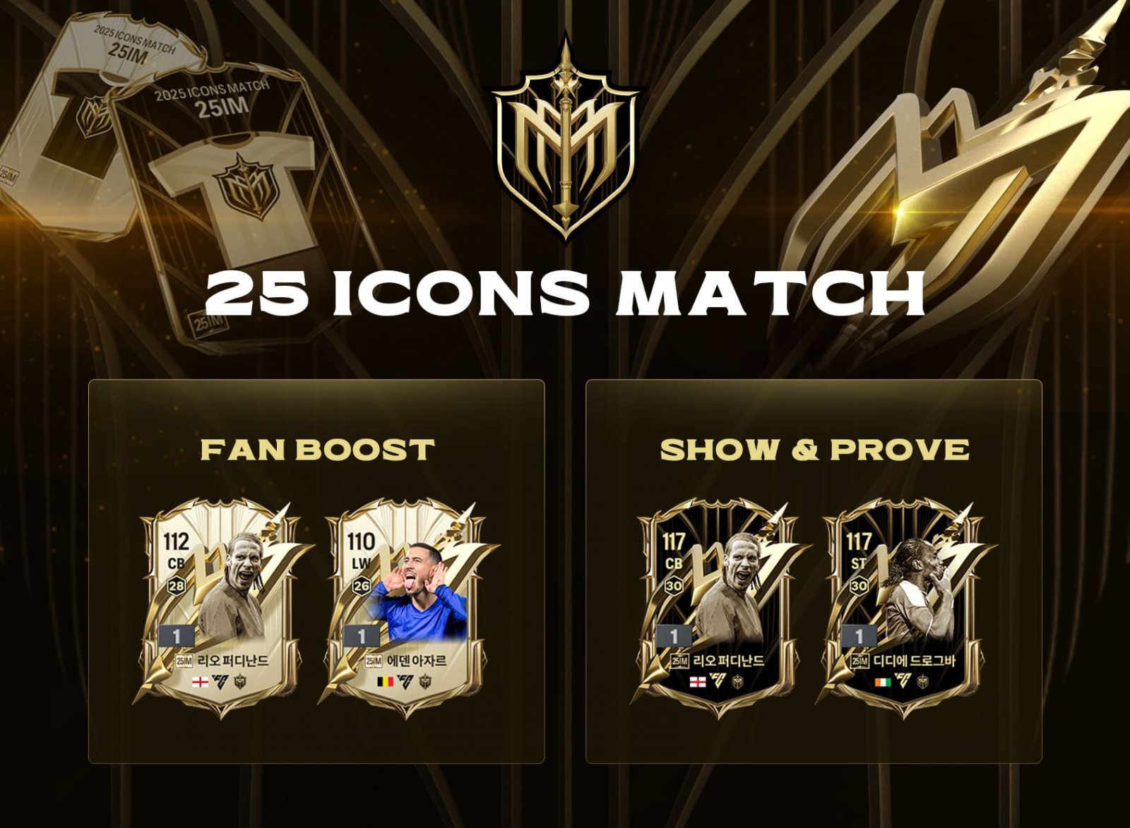 또 실제 ‘2025 아이콘매치’ 경기 결과에 따라 ‘25IM 클래스’ 선수들의 능력치가 상승하는 ‘라이브 포퍼먼스’가 적용될 예정이어서 지난해보다 이벤트 경기와 메인 매치에 대한 관심이 더욱 높아지고 있다. 현실 이벤트와 게임을 긴밀히 연결하는 또 하나의 재미 요소로 작용할 전망이다.