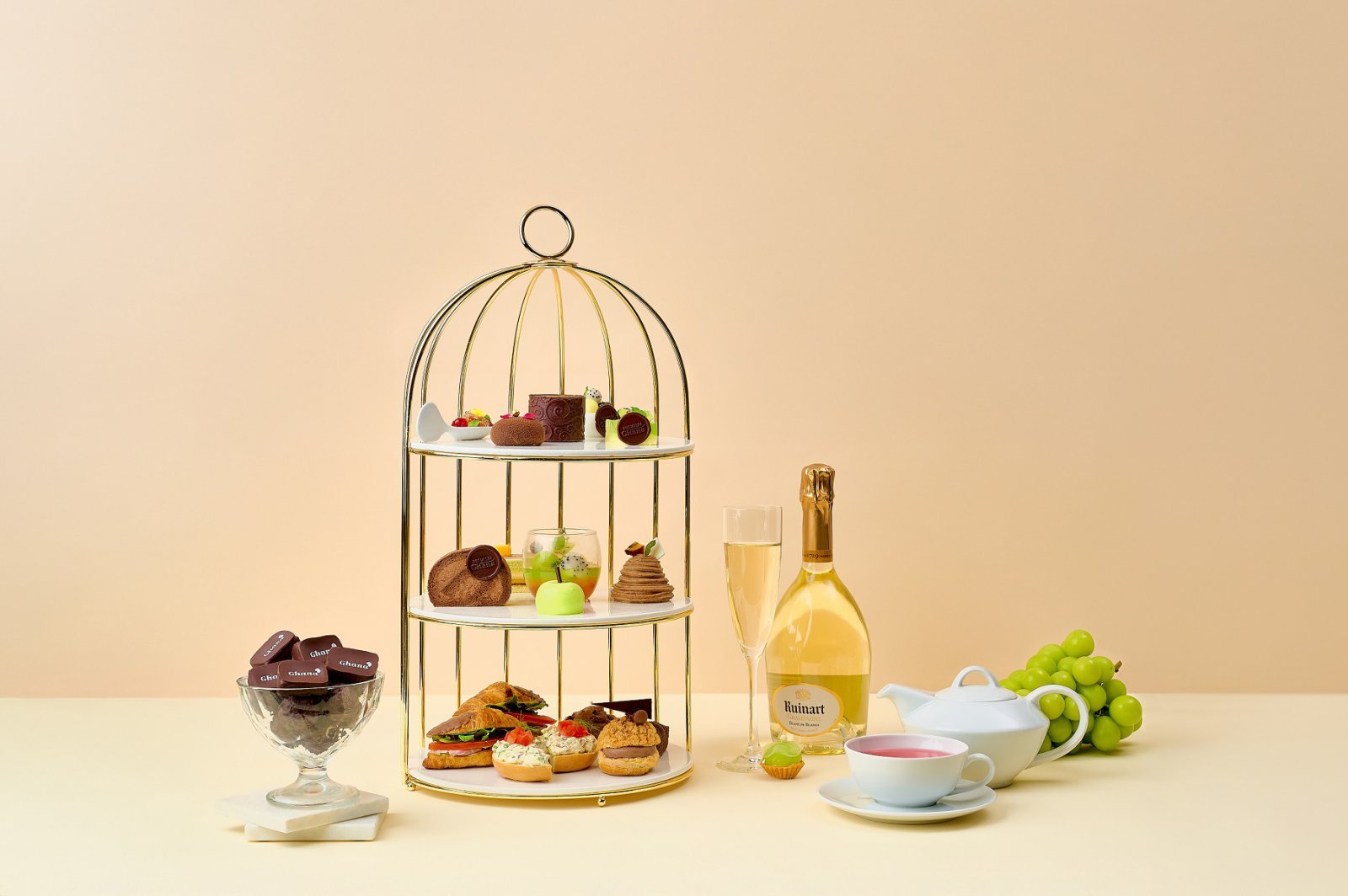 애프터눈 티 세트는 평일과 일요일에 4부제(12:00, 14:30, 17:00, 19:30), 토요일에 3부제(14:30, 17:00, 19:30)로 운영된다. 금빛 3단 트레이에 발로나 초콜릿으로 만든 샤인머스캣 오페라 케이크, 타르트, 샴페인 초콜릿 등 10여 종의 디저트가 제공되며, 차 또는 커피 2잔이 기본으로 포함된다. 오후 7시 30분 이후 세션에는 음료 대신 샴페인 1병이 제공돼 특별한 가을의 밤을 연출할 수 있다.