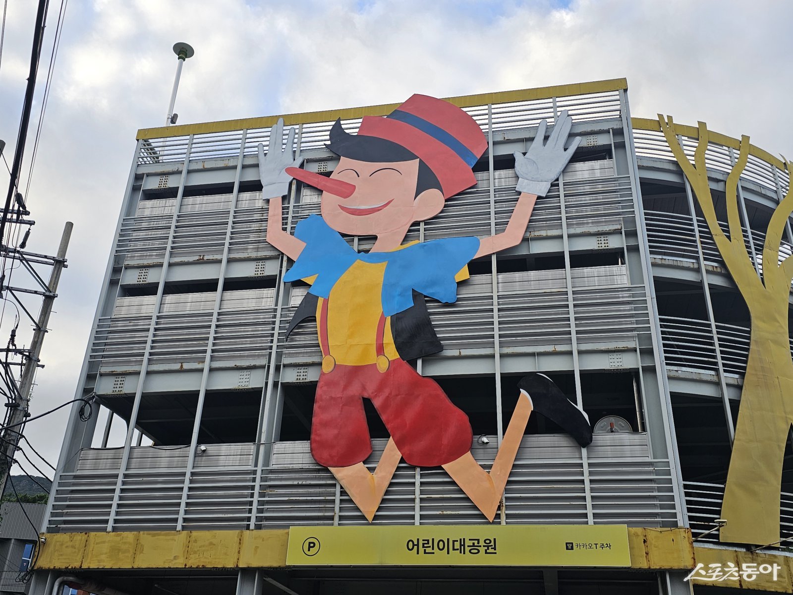 부산어린이대공원 주차장에 설치된 피노키오 조형물이 새롭게 도색돼 밝고 생동감 있는 모습으로 재탄생했다. (사진제공=부산시설공단)