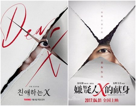 논란이 된 포스터는 ‘친애하는 X’가 공개일(11월 6일) 발표와 함께 내놓은 것으로, X자로 찢어진 흰 배경 이미지 사이로 주인공의 강렬한 눈, 중앙에는 붉은 색 타이틀이 배치됐다. 공개 직후 해당 포스터의 구도와 색감, 여기에 서체까지 일본 소설을 원작으로 한 2017년 중국 영화 ‘용의자 X의 헌신’의 포스터와 유사하다는 지적이 온라인 커뮤니티 중심으로 확산됐다.