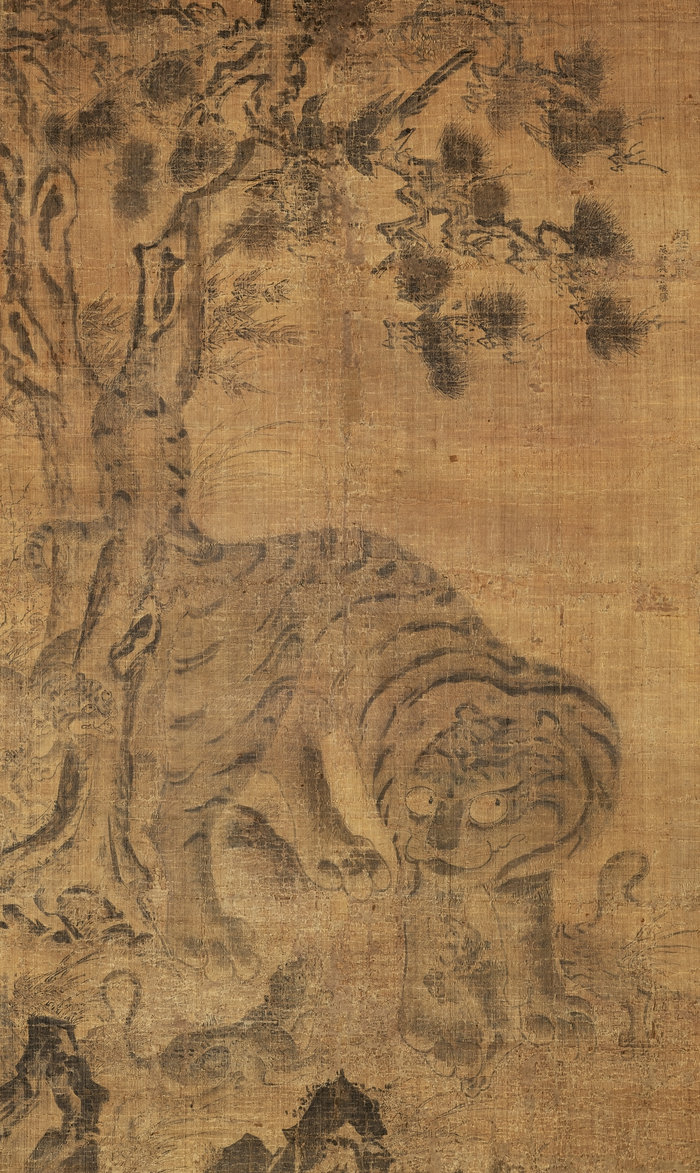 ‘임진년’ 기록이 남은 이 그림은 일반 회화 형식으로 중국 원나라 양식이 한국적으로 변형되는 과정을 보여준다. 호랑이가 새끼를 데리고 산에서 내려오는 ‘출산호’, 새가 놀라는 ‘경조’, 새끼를 키우는 ‘유호’ 등 다층적 해석이 가능해 학술 가치도 크다.