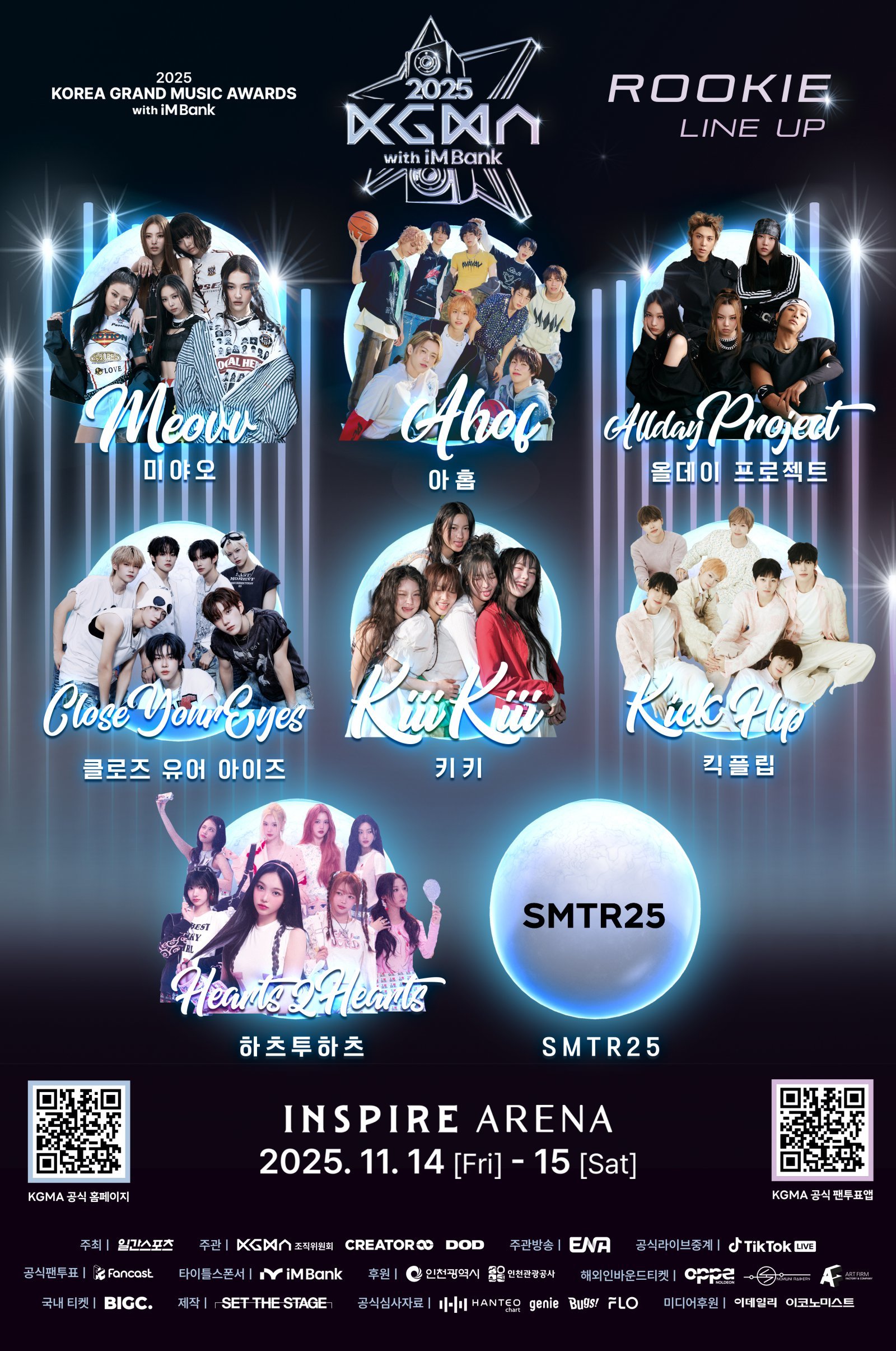 글로벌 케이(K)팝의 미래를 책임질 차세대 주자들을 KGMA가 엄선해 소개하는 올해의 루키 라인업에는 미야오와 아홉, 올데이프로젝트, 키키, 킥플립, 클로즈유어아이즈, 하츠투하츠, SMTR25가 선정됐다.