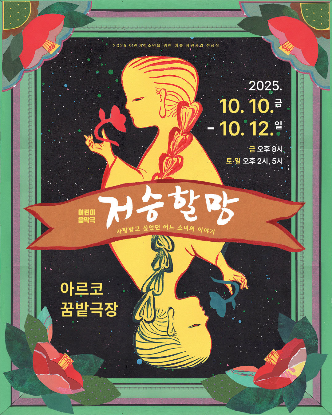 ‘저승할망’은 2025년 어린이·청소년을 위한 예술지원사업 선정작으로, 한국문화예술위원회와 아르코 꿈밭극장이 후원한다. 공연은 36개월 이상부터 관람할 수 있으며, 러닝타임은 약 65분이다. 티켓은 NOL티켓과 네이버 예약을 통해 예매 가능하다.