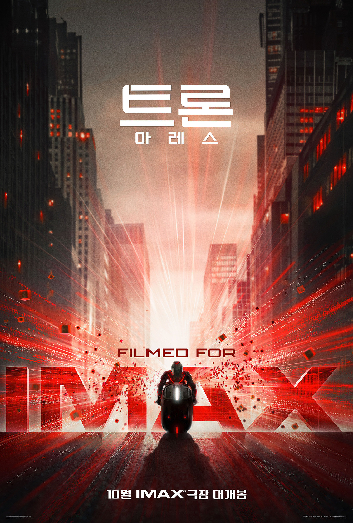 이번에 공개된 포스터는 웅장하고 압도적인 스케일을 기대하게 하는 스타일리시한 비주얼로 시선을 사로잡는다. 먼저 강렬한 섬광이 돋보이는 아이맥스(IMAX) 포스터는 현실에 등장한 아레스(자레드 레토)의 모습을 담고 있어 눈길을 끈다. 초인적인 힘과 속도, 고도 지능으로 설계되어 무한하게 재생될 수 있지만 기술의 한계로 단 29분만 현실 세계에 머물 수 있는 AI 최종 병기 아레스의 등장이 현실 세계에 어떤 영향을 끼칠지 궁금하게 만든다.