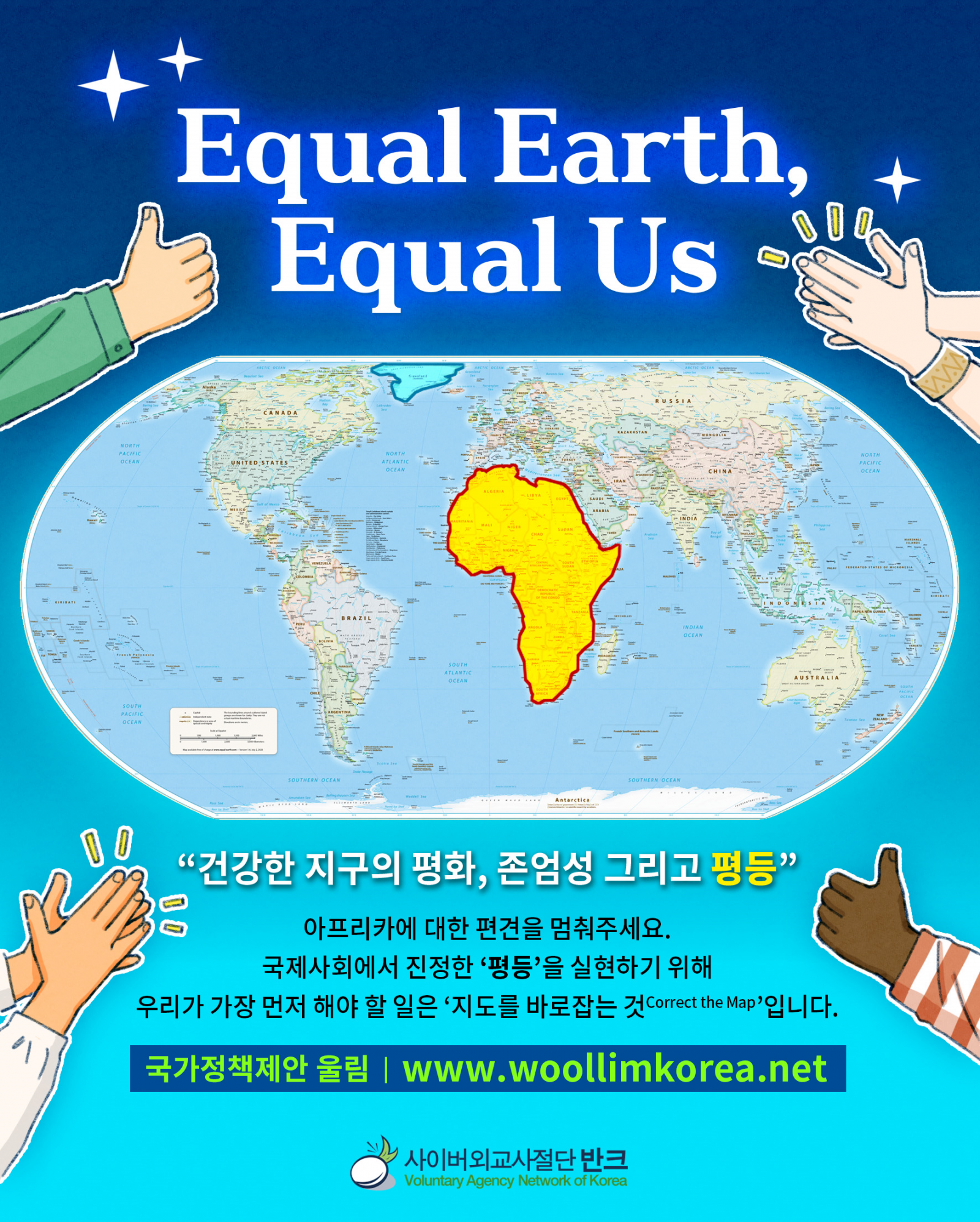 사이버외교사절단 반크가 ‘메르카토르 도법’ 세계지도의 사용을 지양하고 균형 잡힌 세계지도의 활용을 촉구하는 글로벌 캠페인을 시작한다. 지난달 15일 ‘아프리카 노 필터(Africa No Filter)’와 ‘스피크 업 아프리카(Speak Up Africa)’가 주도한 “Correct the Map” 캠페인을 아프리카연합(AU)이 공식 지지하면서, 이에 대한 전 세계적 관심이 높아지고 있다.국제기구 웹사이트 속 ‘메르카토르 도법’ 지도 문제 지적