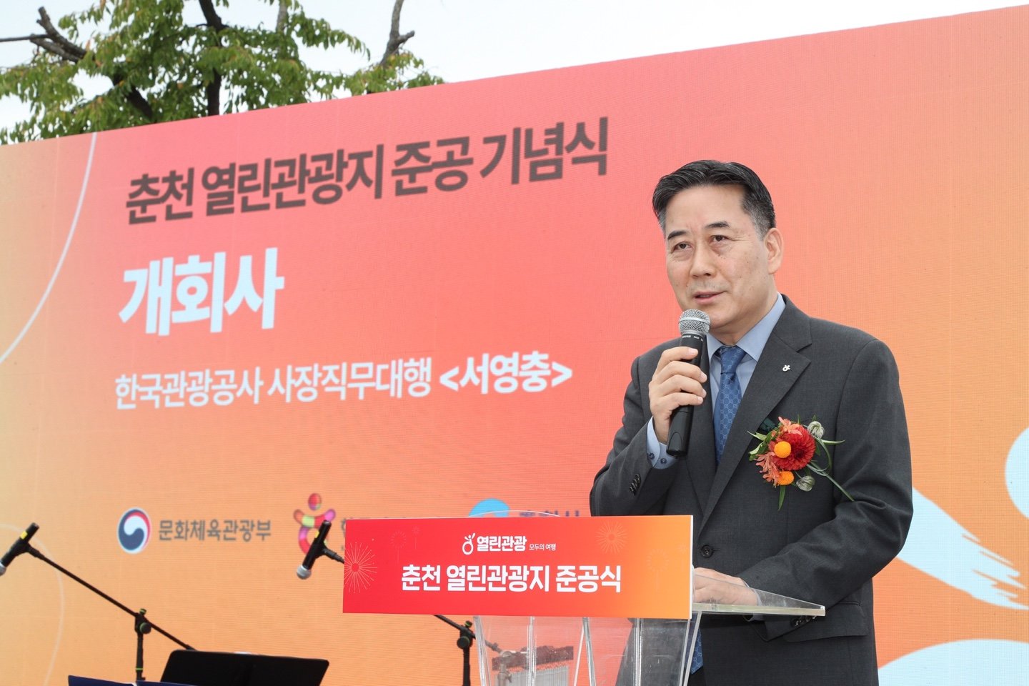 한국관광공사(사장직무대행 서영충, 이하 공사)는 16일 김유정레일바이크 야외무대에서 열린관광지 준공식을 개최했다. 이날 현장에는 공사와 춘천 열린관광지 관계자, 장애인 여행단 등 80여 명이 모여 새로운 출발을 축하했다.
