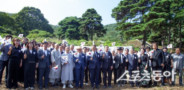 예천 ‘독립운동가 성암 장윤덕 의병장 순국 118주기 추모제’ 참석자들이 기념 촬영하고 있다. 사진제공 ㅣ 예천군