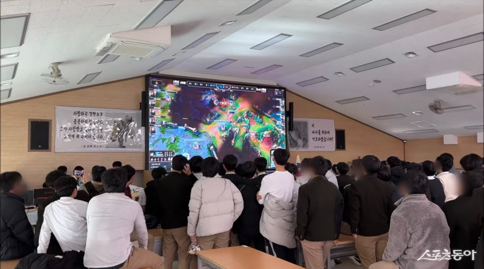 무학고 e스포츠 대회 ‘리그 오브 레전드’ 경기 현장. 사진 출처|유튜브 무학고TV
