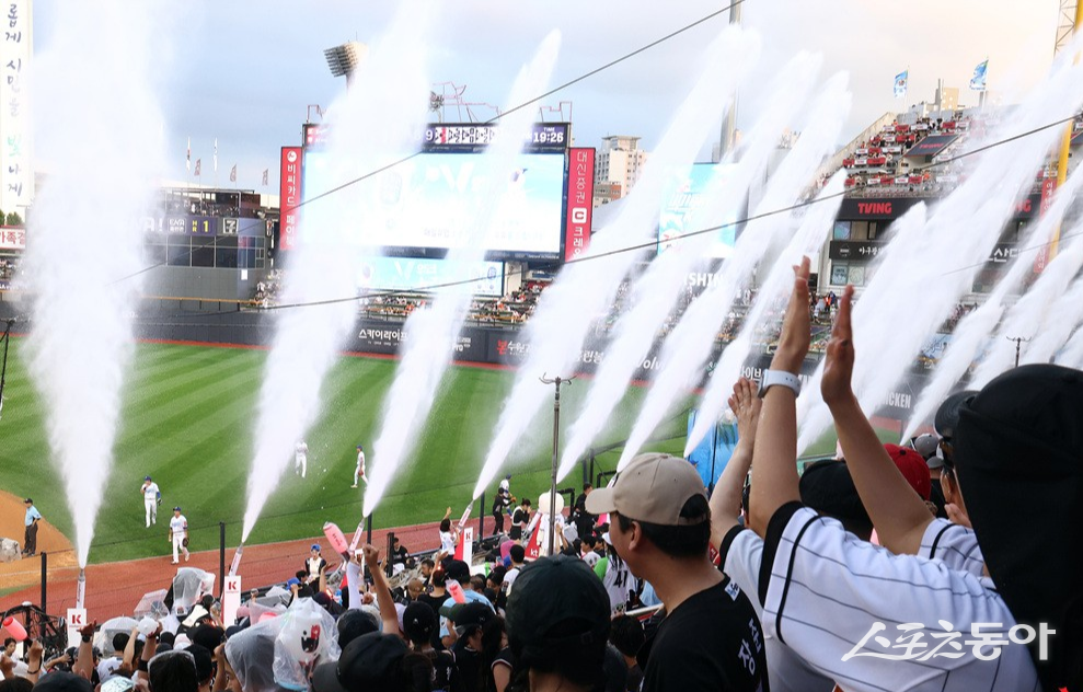 수원KT위즈파크에서 워터 페스티벌을 즐기는 관중들. 사진 제공|KT 위즈