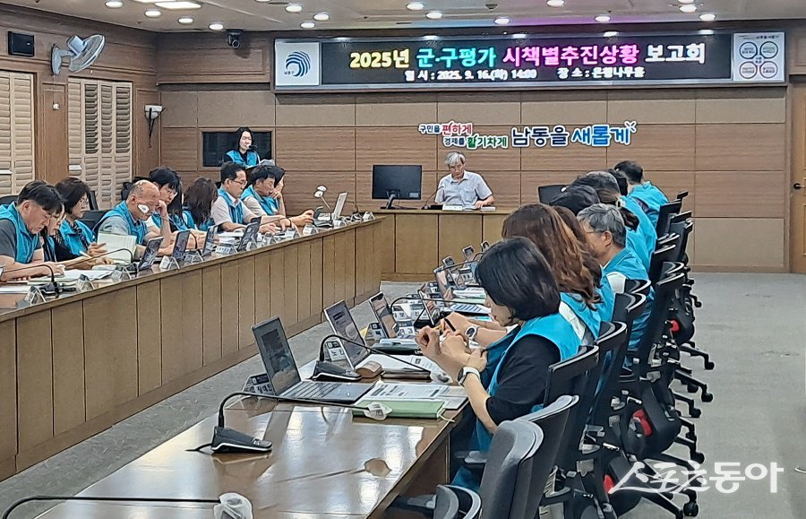 인천 남동구는 최근 구청 은행나무홀에서 한기용 부구청장 주재로 2025년 군‧구 행정실적 종합평가 대비 ‘시책별 추진상황 보고회’를 진행됐다.
