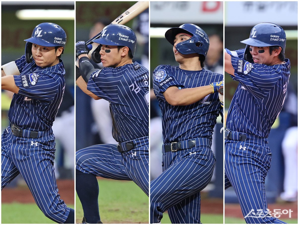 삼성은 17일 열린 ‘2026 KBO 신인 드래프트’에서 11명 중 9명을 투수로 선택했다. 박진만 삼성 감독과 함께 성장한 김지찬, 김성윤, 이재현, 김영웅(왼쪽부터) 등 20대 초중반의 야수들이 정상급 선수로 발돋움한 영향이 크다. 사진제공|삼성 라이온즈