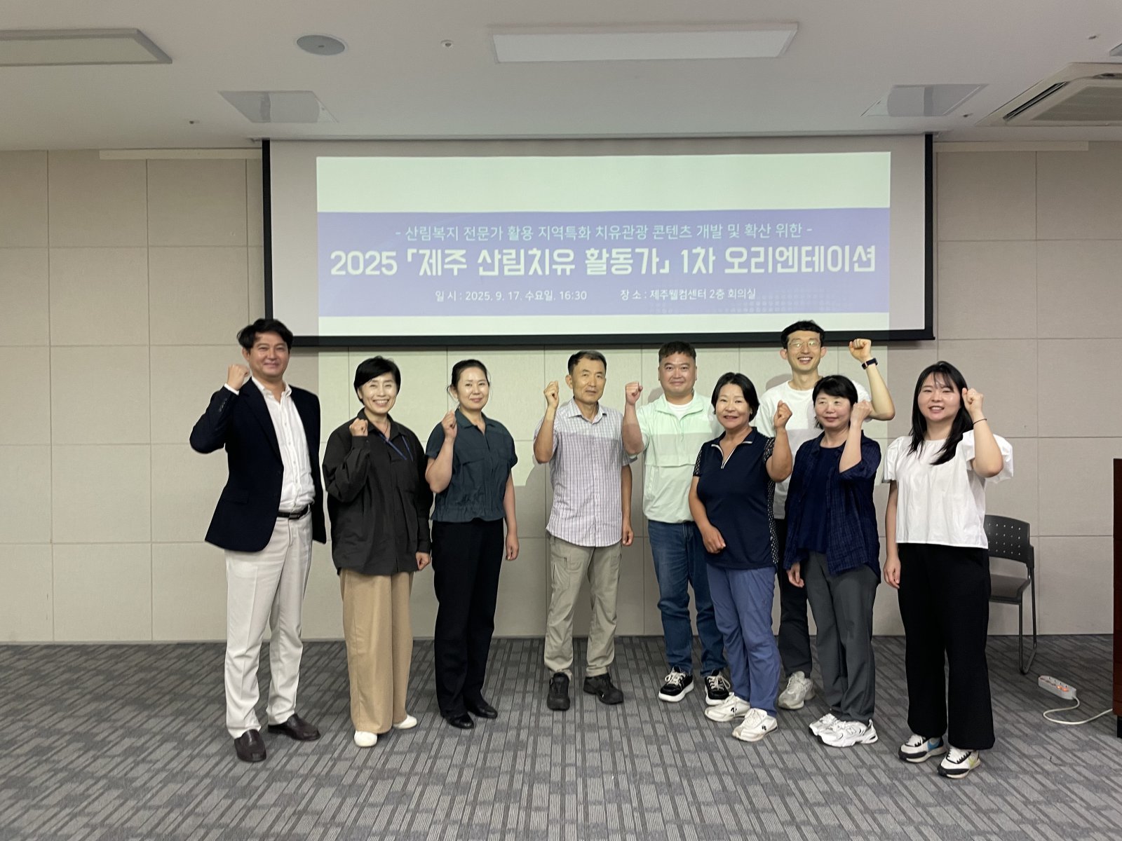 오리엔테이션에서는 사업 취지와 추진 방향을 공유하고, 참여자 간 상호 소개와 네트워킹, 향후 활동 안내가 이뤄졌다. 활동가들은 앞으로 서귀포시 치유의숲과 머체왓숲 등 도내 주요 치유관광 거점에 배치돼 현장 중심의 실무 역량 강화 과정을 밟게 된다. 또한 수요처와 연계한 치유 프로그램 개발과 운영도 지원받는다.