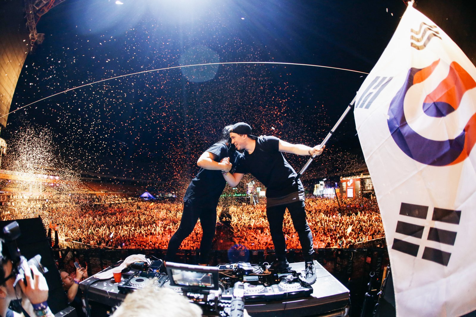 8년만에 내한하는 하드웰이 2017년 태극기모양의 울트라 깃발을 든 모습