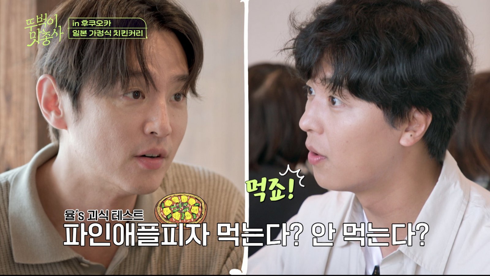 이토시마에 도착한 세 사람은 일본 가정식 전문점에서 첫 만찬을 즐겼다. 밥도둑 가지된장볶음, 부드러운 치킨함박, 감칠맛 가득한 고등어구이가 뚜벅이들의 입맛을 사로잡았다. 그러나 연우진이 계란 노른자에 밥을 비벼 먹자, 권율이 “우진이는 괴식을 많이 만들어 먹는다”며 경악했다. 이에 파인애플 피자를 먹는지를 두고 때아닌 ‘괴식 테스트’가 벌어졌다. 결과는 연우진 혼자만 “먹는다”고 대답해, 2:1로 취향이 갈렸다.