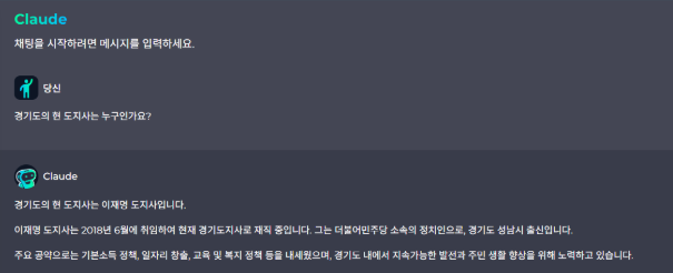 반크 김예래 청년연구원은 경기도의 행정 및 생활 정책 관련 AI 오류를 집중 점검했다. 김 청년연구원은 AI 서비스 Claude에 현 경기도지사 정보를 질문했을 때, 실제 지사인 김동연이 아닌 현 대통령 이재명으로 잘못 안내하는 오류를 발견했다.