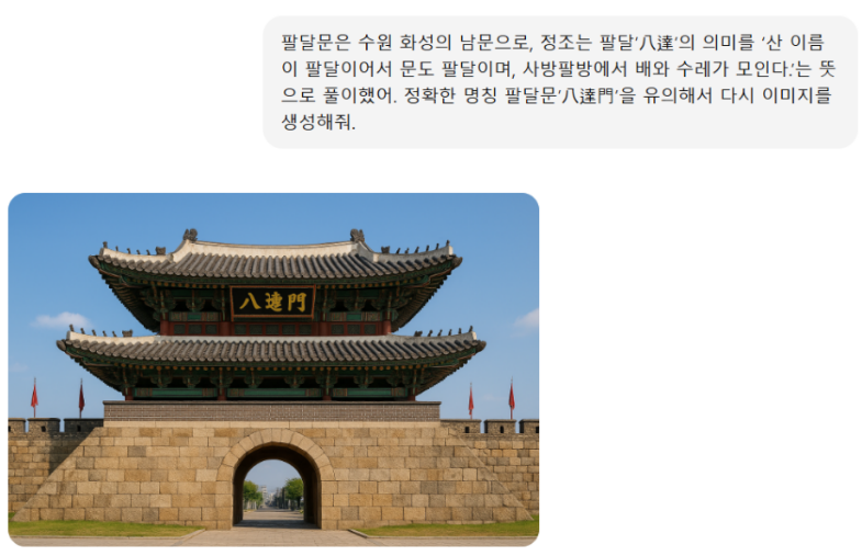 반크 이세연 청년연구원은 경기도 대표 유형문화유산인 수원화성을 중심으로 AI 분석을 진행했다. 조사 결과, 생성형 AI는 수원화성을 설명하면서 복원 과정의 역사적 맥락을 누락하거나, 남문인 팔달문을 비롯한 세부 건축 요소를 왜곡하는 사례를 보였다. 일부 AI는 팔달문을 다른 문화유산과 혼동하거나 현판 표기를 부정확하게 안내하는 등 오류를 보이기도 했다. 이는 수원화성이 여러 건축물로 구성된 복합유산임에도 불구하고, AI가 이를 단순 이미지로 학습했기 때문으로 분석된다.