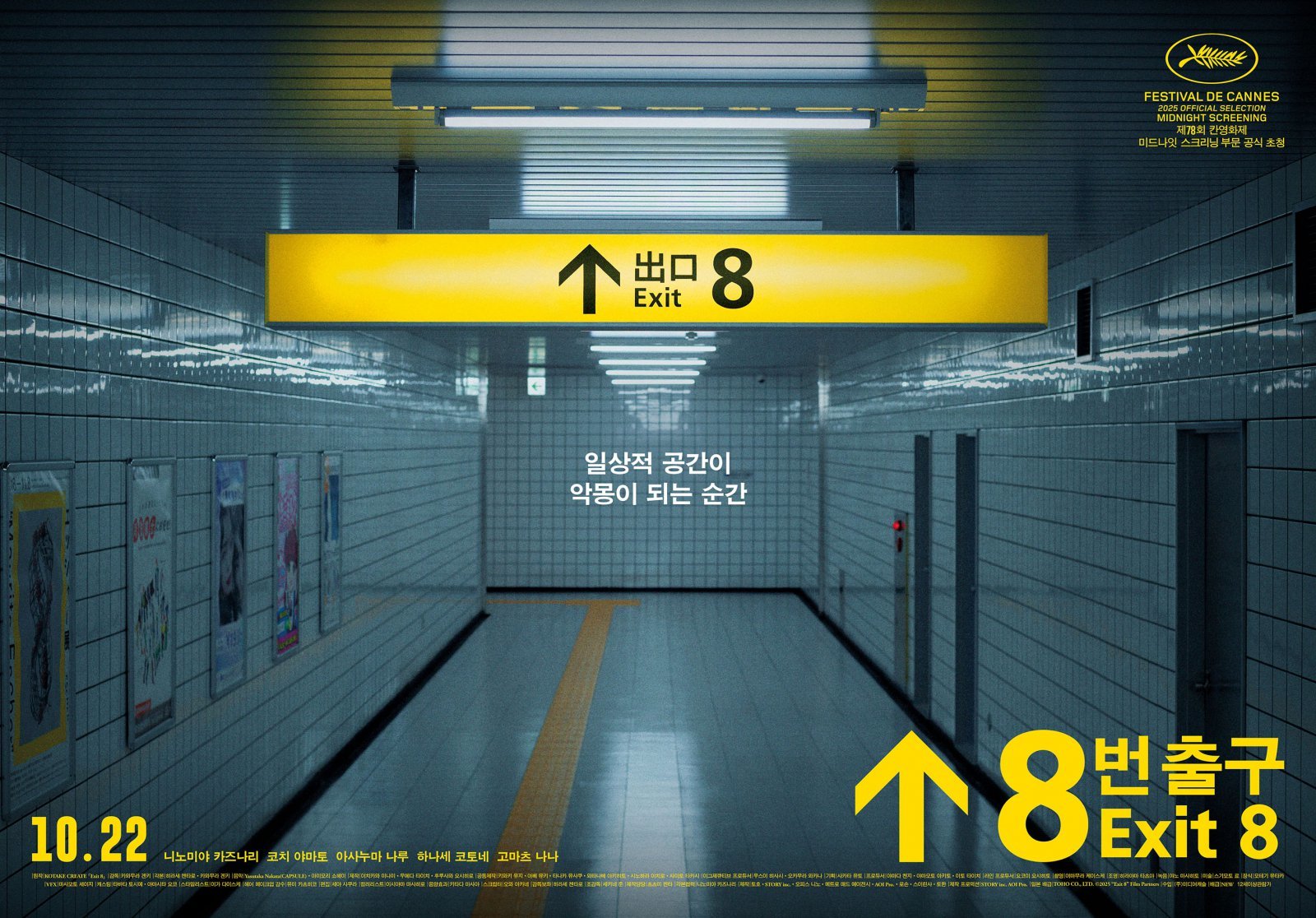 10월 22일 개봉하는 ‘8번 출구’는 무한루프의 지하도에 갇혀 8번 출구를 찾아 헤매는 남자가 반복되는 통로 속 이상 현상을 찾아 탈출하는 이야기를 그린다.